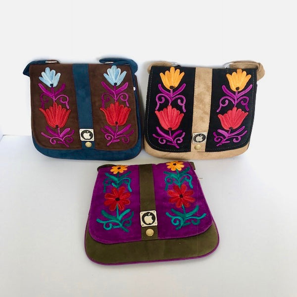These handy everyday bags each have an adjustable strap that crosses the body for smart and easy wear. Each is embroidered with a floral pattern. They come in two styles....