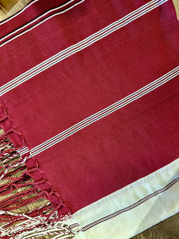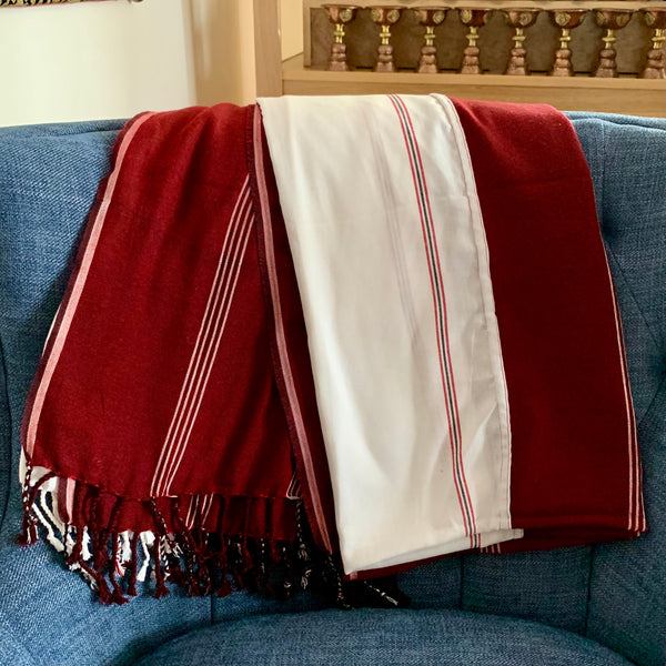 These quality Ngagpa shawls have both white and maroon sections with a black stripe in the weave.  The light weight cotton variety is perfect for the warmer months, while the...